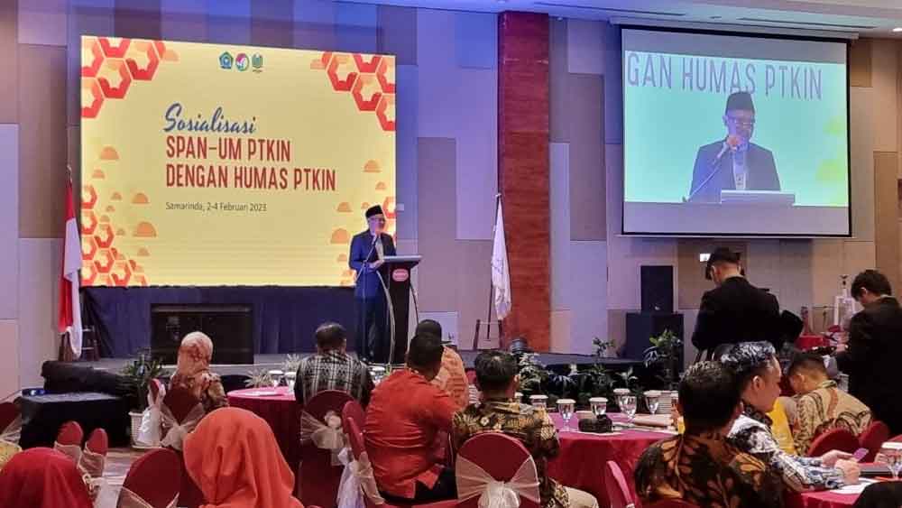 Hadir Rektor UIN Sultan Aji Muhammad Idris Samarinda yang merupakan tuan rumah dalam kegiatan Sosialisasi SPAN-UM PTKIN dengan Humas PTKIN tahun 2023.