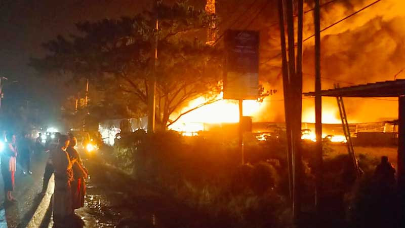 Peristiwa kebakaran pabrik kasur di Arjawinangun ini terjadi sekira pukul 20.00 WIB. Hingga kini, pukul 22.04 WIB api masih belum dapat dipadamkan.