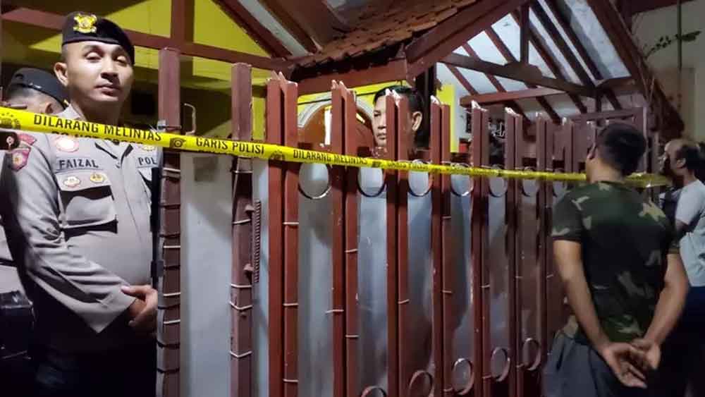 Rumah yang menjadi tempat kejadian perkara dipasang garis polisi dan dijaga petugas.* (Foto: Istimewa)