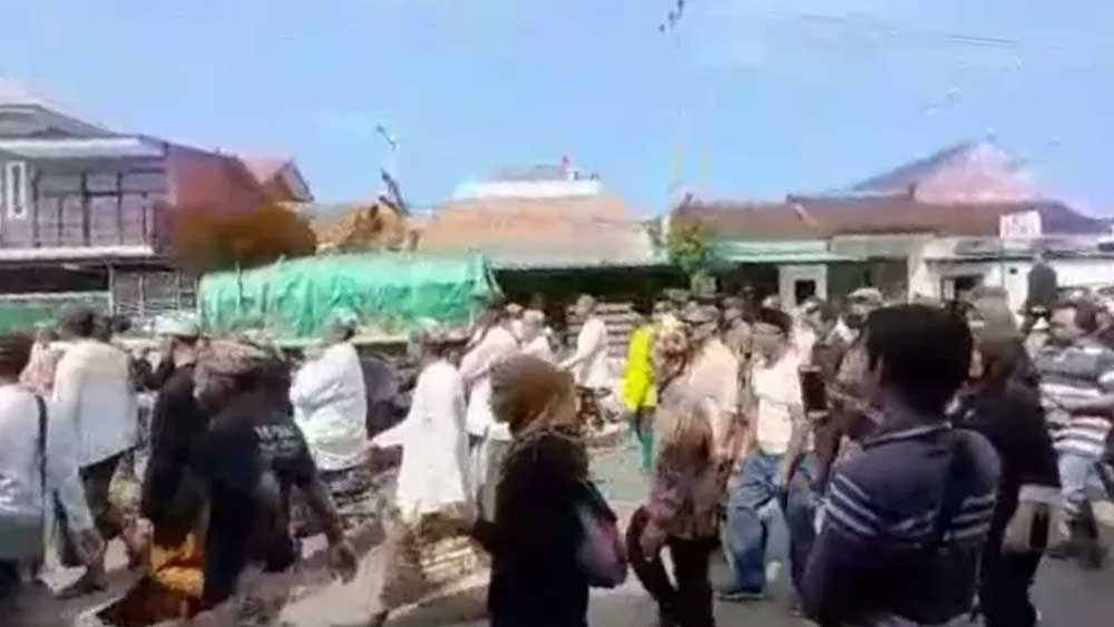 Tangkapan layar rekaman saat abdi dalem mengarak keranda berisi jenazah permaisuri Ratu Dalem Ibu Ratu Sepuh Hj Sri Mulya dari Keraton Kanomen ke Astana Gunung Smebung di Kompleks Makam Sunan Gunungjati untuk dimakamkan.*