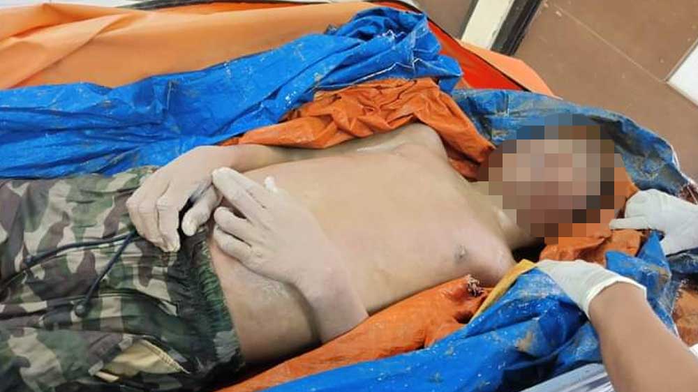 Mayat tersebut memiliki ciri-ciri mengenakan celana pendek loreng warna hijau dan celana dalam warna merah, mayat tidak mengenakan baju.