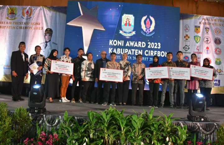 Penghargaan dan bonus tersebut diberikan langsung oleh Bupati Cirebon H Imron, M.Ag didampingi Wakil Bupati Cirebon Hj Wahyu Tjiptaningsih dan sejumlah pejabat lainnya pada acara Malam Prestasi KONI Kabupaten Cirebon Award 2023 di Hotel Apita Cirebon, Minggu, 26 Maret 2023.