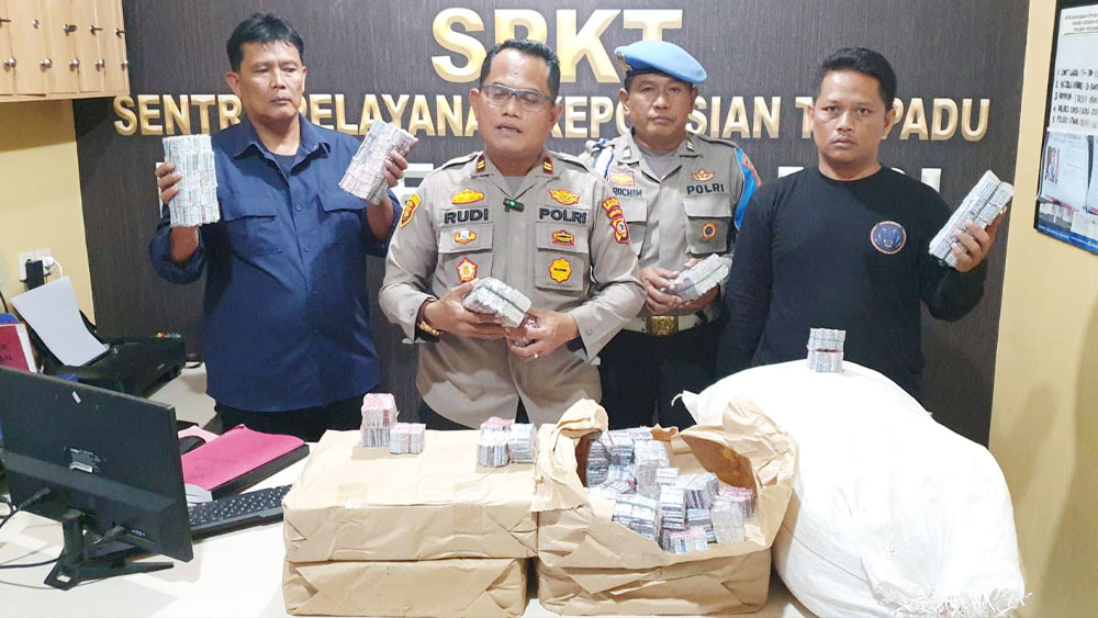 “Hasil pemeriksaan ditemukan adanya diduga petasan ukuran kecil-kecil sebanyak 40 karton yang berisi 400 pak petasan yang ditutupi dengan plastik rongsok, serta terpal dengan nilai sekitar Rp12 juta,” jelasnya.