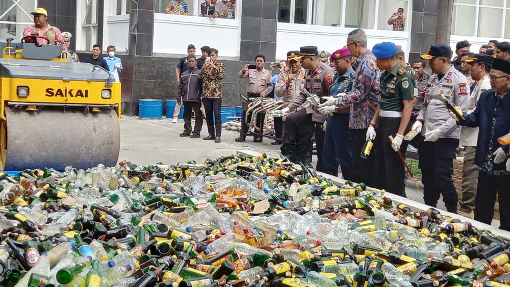 “Barang bukti dari kami, 18.920 Botol miras berbagai merk, 25.588 Butir obat-obatan sediaan farmasi tanpa ijin edar yang sah, 675 knalpot bising berbagai bentuk dan merk dan 33 dus petasan dengan jumlah 211.588 buah berbagai merk dan jenis,” kata Ariek usai pemusnahan.