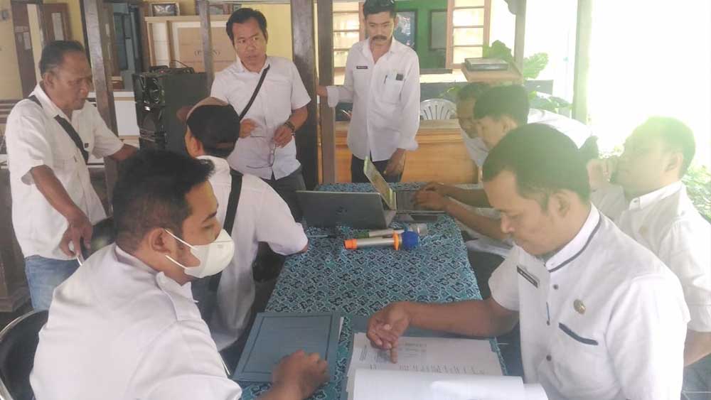 PROSES PENGECEKAN dan penginputan data oleh DPMD guna percepatan berkas penyaluran anggaran desa maupun pengajuan, bertempat di Kecamatan Lemahabang, Kabupaten Cirebon, Rabu, 29 Maret 2023.* (Foto: Baim/Suara Cirebon)