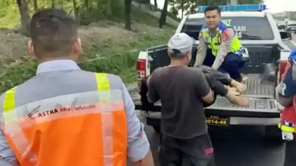 Tangkapan layar video rekaman saat petugas mengevakuasi korban kecelakaan di kilometer 153 Tol Cipali, Selasa, 25 April 2023.*