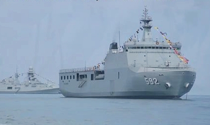 Kepala perang TNI AL KRI Banjarmasin membuka program angkutan lebaran gratis (arus balik dan arus mudik), menyusuri perairan pantai Laut Jawa.