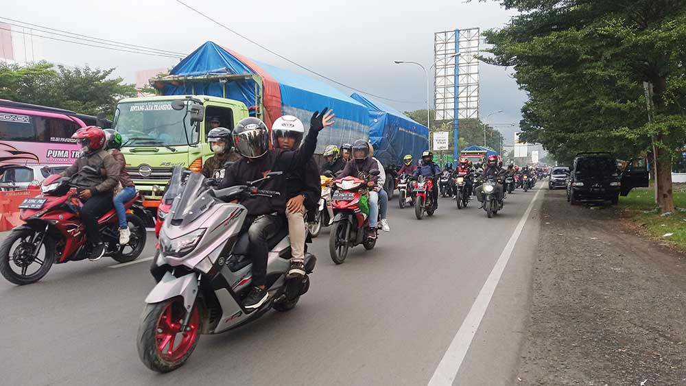 “Dominasi oleh pemudik sepeda motor. Konvoi panjang di puncak arus balik terjadi sepanjang Minggu sore sampai malam hari,” tutur Arif Budiman.