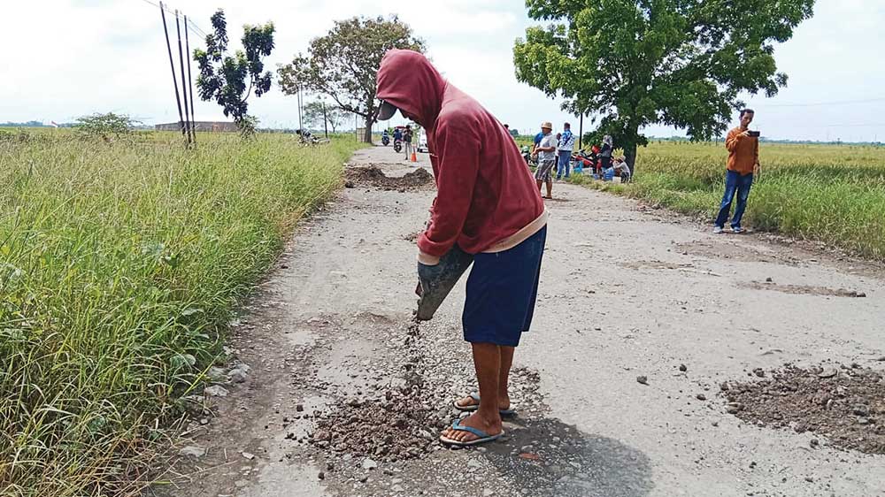 “Saya bersama pemuda warga di sini berusaha bersama-sama melakukan penimbunan jalan yang berlubang untuk menghindari adanya kecelakaan. Batu maupun pasir yang kita beli merupakan hasil sumbangan dari kendaraan-kendaraan yang melintas yang memberi secara sukarela,” ungkapnya.