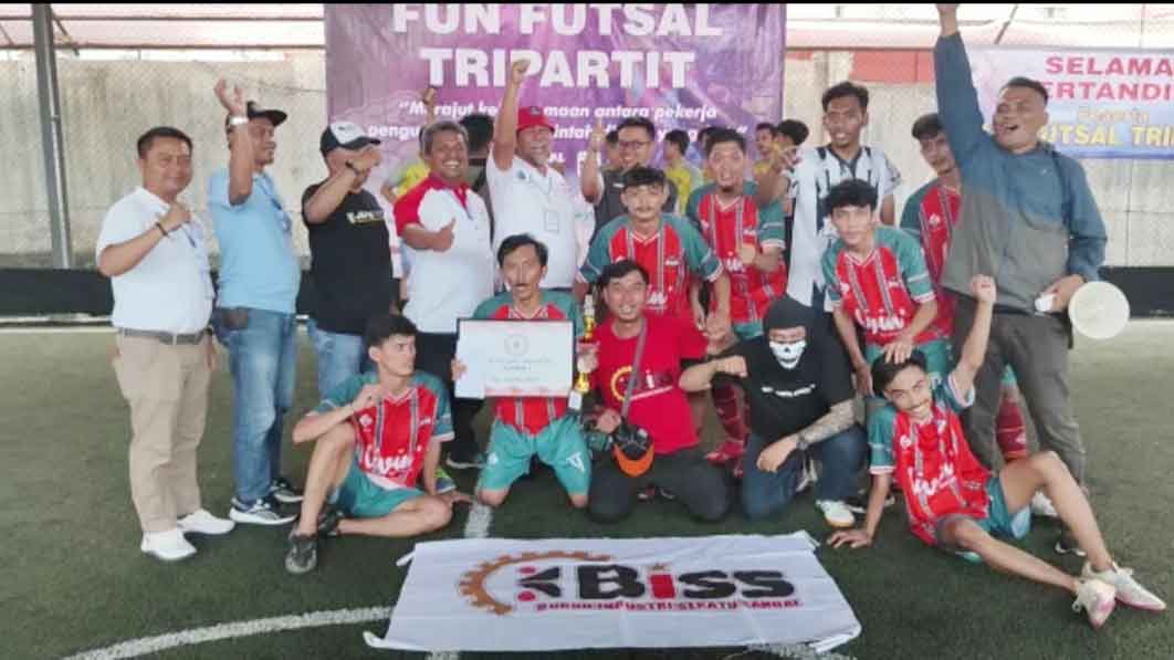 SUARA CIREBON – Tim Futsal Federasi Serikat Pekerja (FSP) Buruh Industri Sepatu Sandal (BISS) PT Long Rich Indonesia berhasil menjuarai Fun Futsal Tripartit Cirebon 2023, Sabtu, 20 Mei 2023.