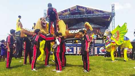 Penampilan salah satu grup burok yang ikut memeriahkan pagelaran festival seni budaya burok se-Kecamatan Babakan, Kabupaten Cirebon di Desa Sumber Kidul, Minggu (28/5/2023).* Foto: Baim/Suara Cirebon