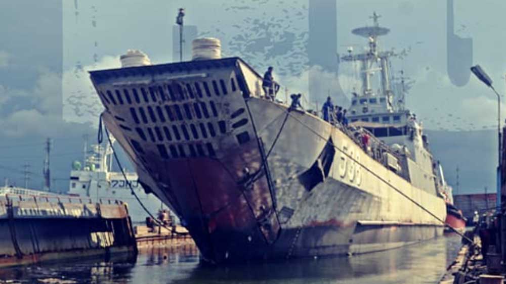 TNI AL kini berupaya menarik KRI Teluk Hading – 538 yang terbakar ke pulau atau daratan terdekat.