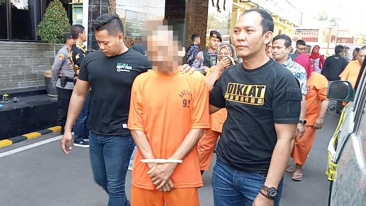 Para tersangka Tindak Pidana Perdagangan Orang (TPPO) digelandang di Mapolresta Cirebon, Jumat, 9 Juni 2023.* (Foto: Sukirno/Suara Cirebon)
