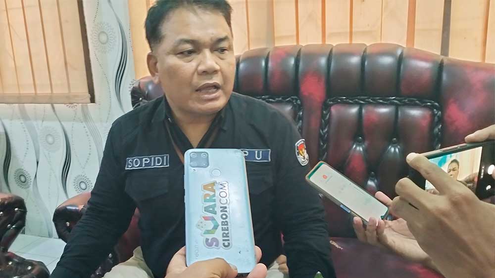 Ketua KPU Kabupaten Cirebon, H Sopidi menjelaskan tahapan persiapan pleno DPSHP Akhir menjadi DPT kepada awak media, Rabu, 14 Juni 2023.* (Foto: Dede Kurniawan/Suara Cirebon)
