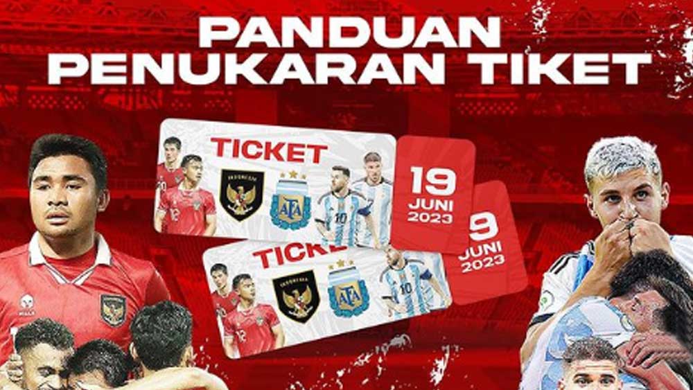 Penukaran tiket resmi laga Indonesia Vs Argentina dibuka PSSI pada Sabtu siang, 17 Juni 2023. Rencananya akan dibuka sampai Minggu, 18 Juni 2023.