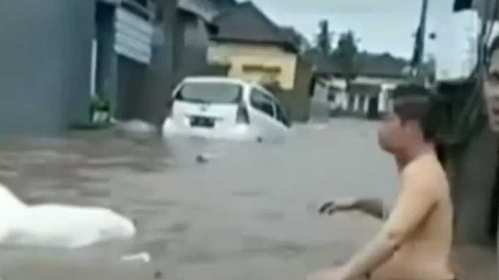 Video banjir bandang mirip tsunami yang menerjang Tabanan, Bali sempat viral. Terlihat sejumlah mobil terseret arus seperti di Banjar Gerang. Dajang Peken, Tabanan pada Jumat sore, 7 Juli 2023.