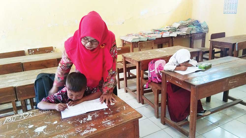 “Sekolah kami (SDN Mulyasari, red) dikelilingi lima MI swasta yang tersebar di seluruh desa. Banyak orang tua memilih memasukkan anaknya ke MI karena mereka memperoleh seragam gratis bahkan uang tunai,” ungkapnya.
