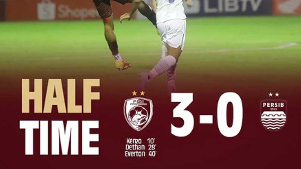 Sampai babak pertama berakhir, PSM Makassar memimpin dengan skor telak 3-0. Ini laga sangat berat bagi Persib.