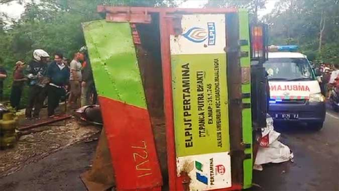 Kecelakaan yang melibatkan truk pengangkut gas elpiji dan motor juga menyebabkan enam orang lainnya mengalami luka-luka.