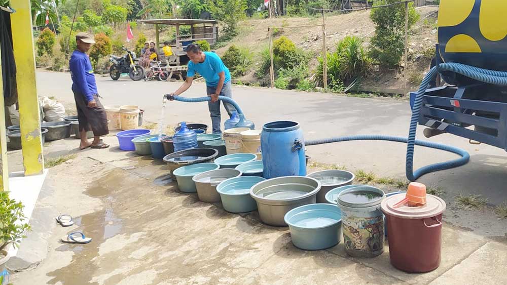 “Di Krangkeng, sedikitnya 6.000 sampai 7.000 warga mengalami krisis air bersih. Kami terus memasok bantuan air buat mereka,” tutur Kapolres Indramayu, AKBP Fahri Siregar.
