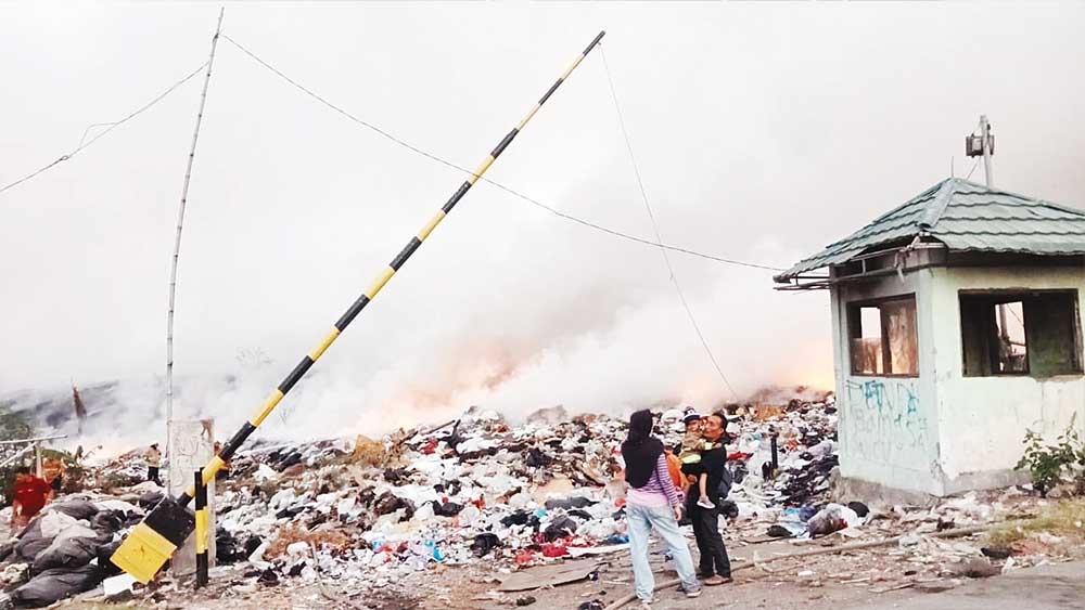 Kobaran api yang menyebabkan kepulan asap tebal langsung memenuhi areal TPA.
