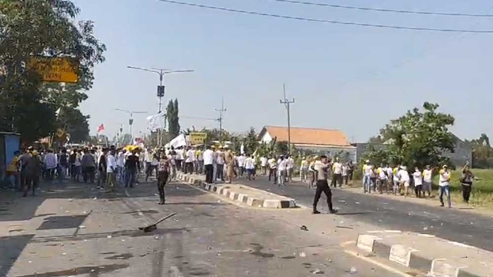 SUARA CIREBON – Keributan antar kelompok massa di Jalan Raya Kapetakan Desa/Kecamatan Kapetakan terjadi saat tahapan pengambilan nomor urut calon kuwu atau kepala desa untuk pilwu serentak 2023 Kabupaten Cirebon, Senin, 18 September 2023 pagi.