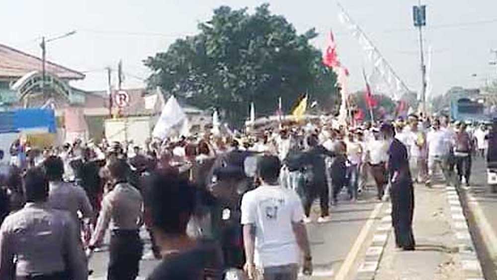 Pendukung calon Kuwu Kapetakan, Kecamatan Kapetakan, Kabupaten Cirebon terlibat bentrokan di jalan raya wilayah setempat, Senin, 18 September 2023 pagi.*