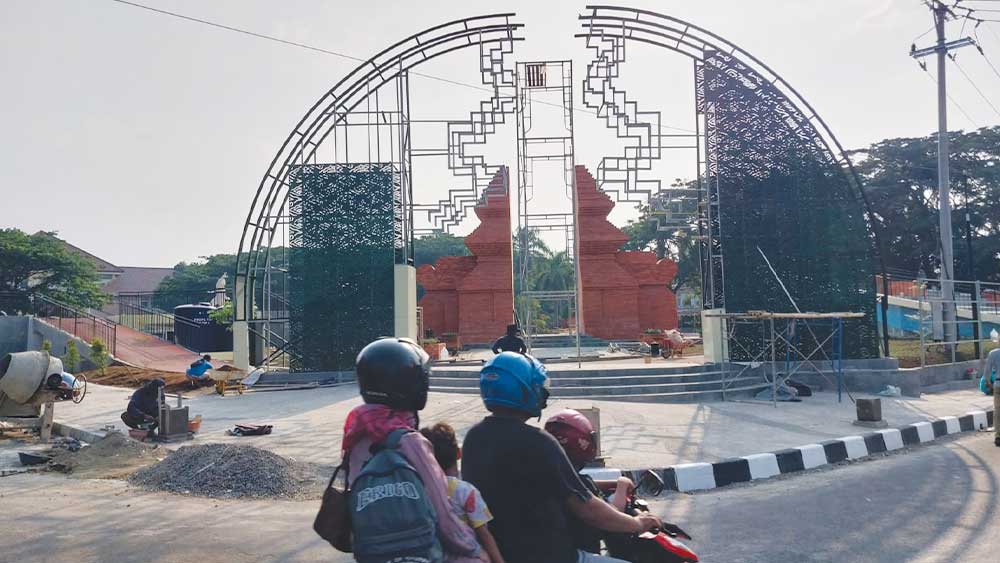 “Kemarin juga ada kabel yang melintang di gapura modern, sehingga tidak bisa kerja sebelum dipindahkan karena ada aliran listriknya. Kemudian, sampai tadi malam lampu taman yang dipesan dari Jogjakarta juga belum datang,” paparnya.