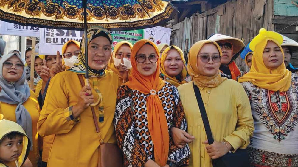 SUARA CIREBON – Ratusan simpatisan mengiringi kampanye calon kuwu Siti Asiyah Desa Kalitengah, Kecamatan Tengah Tani, Kabupaten Cirebon dalam tahapan masa kampanye pemilihan kuwu (Pilwu) serentak tahun 2023 berkeliling kampung bersilaturahmi dengan warga, Senin, 16 Oktober 2023.
