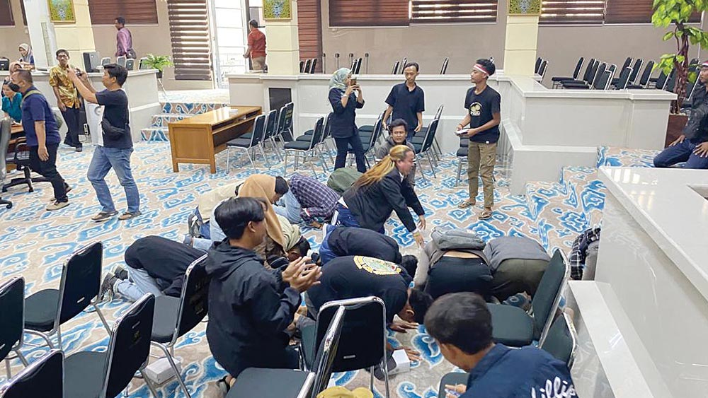 SUARA CIREBON – Sejumlah eks karyawan dengan PT Panjunan langsung melakukan sujud syukur di dalam ruangan rapat Griya Sawala DPRD Kota Cirebon, usai pihak perusahaan menyatakan bersedia mengembalikan ijazah mereka yang sebelumnya ditahan sebagai jaminan, Kamis 19 Oktober 2023.