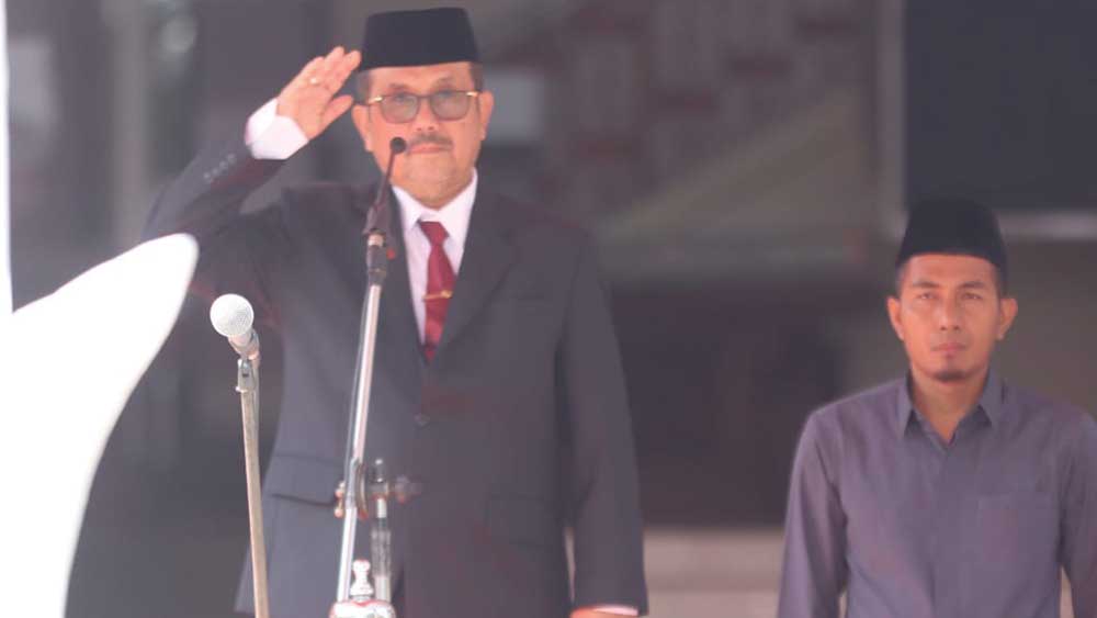 Bupati Cirebon, Drs H Imron MAg memimpin upacara peringatan Hari Sumpah Pemuda di halaman kantor bupati setempat, Sabtu, 28 Oktober 2023.* (Foto: Islah/Suara Cirebon)