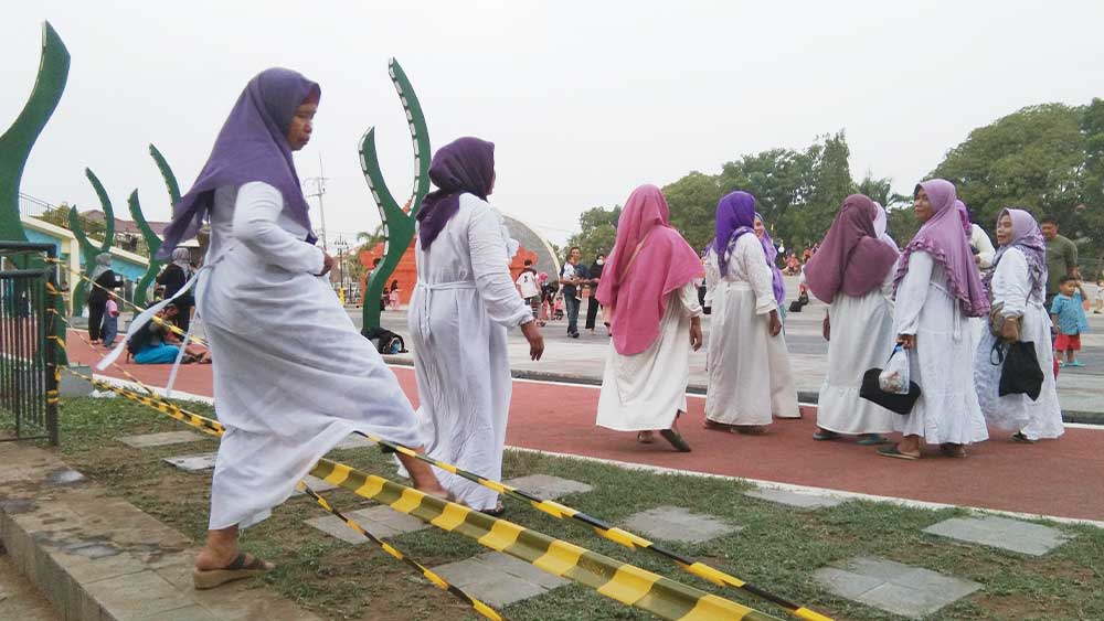 Pengunjung tampak menyerbu Alun-alun Patarkasa yang baru selesai dibangun dan belum diresmikan, Kamis, 2 November 2023.* (Foto: Islah/Suara Cirebon)