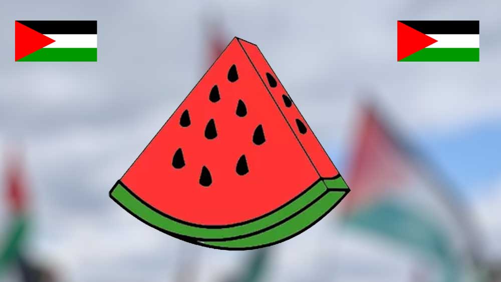 Unsur hijau, merah, hitam dan putih pada bendera Palestina, juga menjadi unsur-unsur menonjol pada warna semangka.