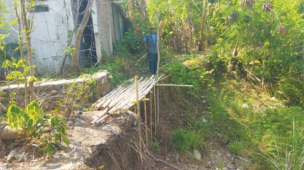 “Kami khawatir nantinya (tanah yang tergerus, red) semakin meluas, sekarang saja dinding bangunan rumah warga sudah pada retak-retak bahkan struktur bangunan sudah miring,” katanya.