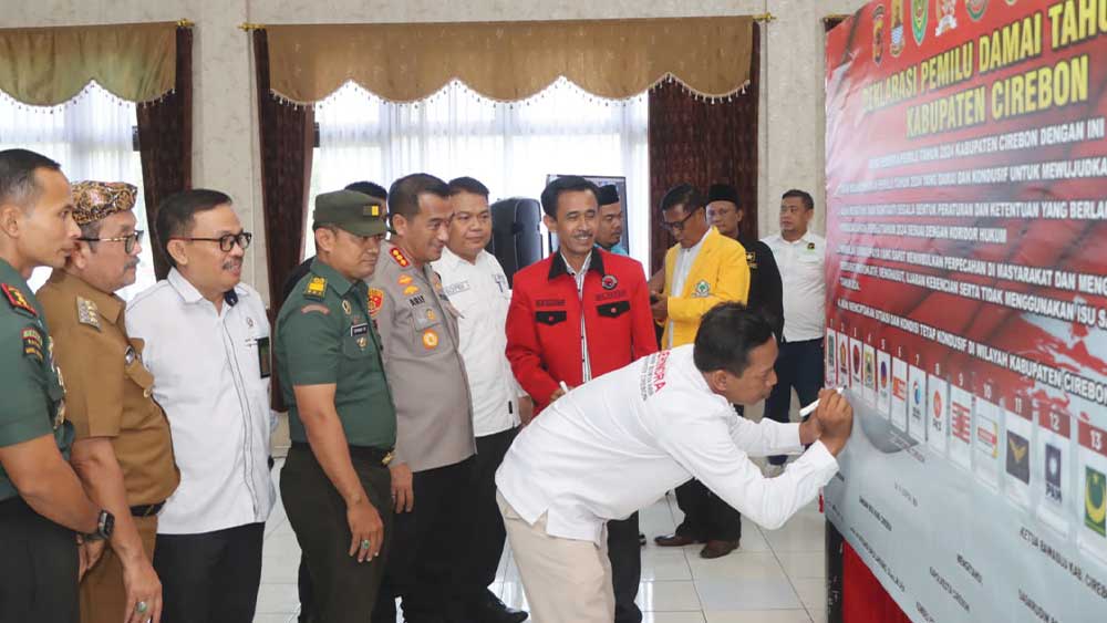 Deklarasi pemilu damai di Kabupaten Cirebon juga mengikuti agenda deklarasi serentak di seluruh Indonesia melalui video konferensi bersama Kapolda Jabar, Irjen Pol  Akhmad Wiyagus dan Kasad, Jenderal Agus Subiyanto.