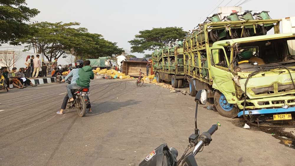 Enam kendaraan yang terlibat itu, yaitu Truck Trailer Nopol B 9814 UEL, Truck Colt Diesel Nopol BG 8315 KN, Truck Ransus Nopol B 9119 JO, Truck Colt Diesel Nopol F 9665 FH, Truck Colt Diesel Nopol L 8402 QA, dan Truck Colt Diesel Nopol R 8006 OD.