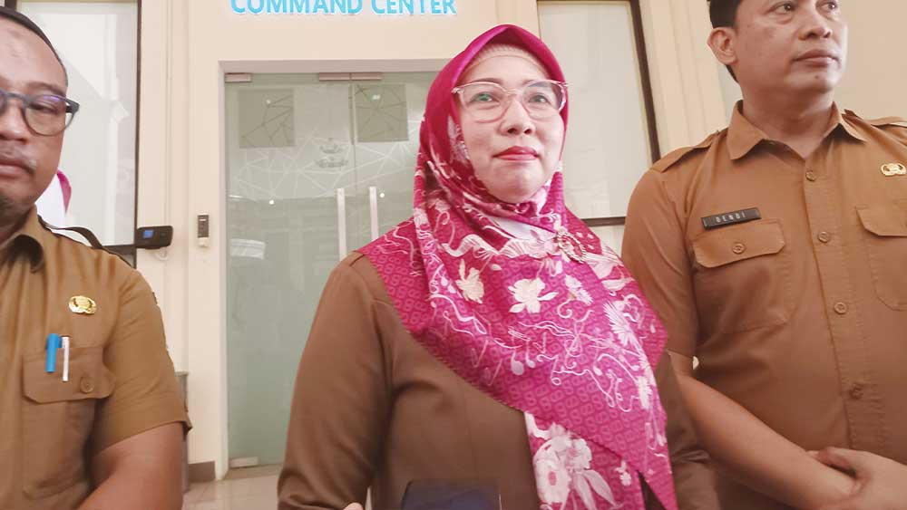 Kadinkes Kabupaten Cirebon, Hj Neneng Hasanah (tengah), saat menyampaikan temuan satu warga yang positif terpapar cacar monyet, Senin, 13 November 2023.* (Foto: Islah/Suara Cirebon)