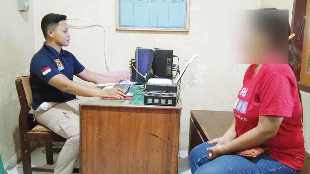 Korban KDRT dan pembakaran rumah, Suniyani, saat melapor ke petugas Polsek Gegesik, Selasa, 21 November 2023.* (Foto: Islah/Suara Cirebon)