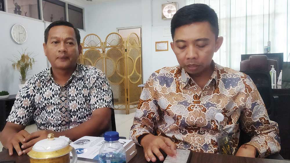 Kepala Bulog Kancab Cirebon, Imam Firdaus Jamal (kanan) didampingi Wakil Kancab, Karyudi saat ditemui Suara Cirebon di ruang kerjanya, Jumat, 24 November 2023.* (Foto: Baim/Suara Cirebon)