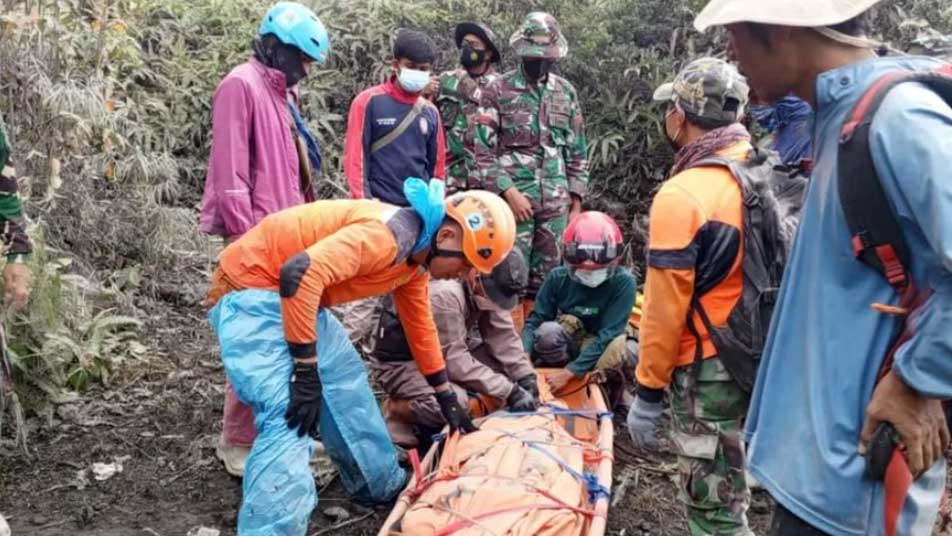 Tim SAR melakukan proses evakuasi jenazah pendaki yang tewas akibat Gunung Marapi meletus.* (Foto: Instagram @basarnas_padang)