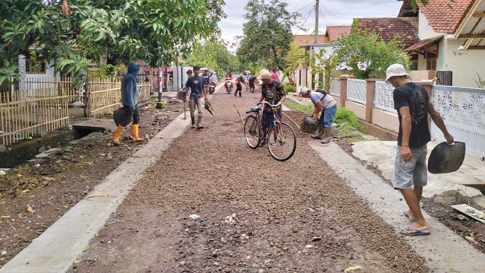 PROSES perbaikan ruas jalan poros Desa Serang Kulon, Kecamatan Babakan, Kabupaten Cirebon, belum lama ini,* (Foto: Istimewa)