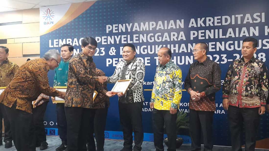 Sertifikat pengakuan tersebut diperoleh lantaran penyelenggaraan penilaian potensi/kompetensi PNS yang dilakukan telah memenuhi kesesuaian Standar Kelayakan Penyelenggaraan Penilian Kompetensi dengan kategori “B” berdasarkan Sertifikat Nomor : 009/BKN/XI/ 2023 tanggal 6 November 2023 tentang Pengakuan Kelayakan Penyelenggaraan Penilaian Kompetensi.