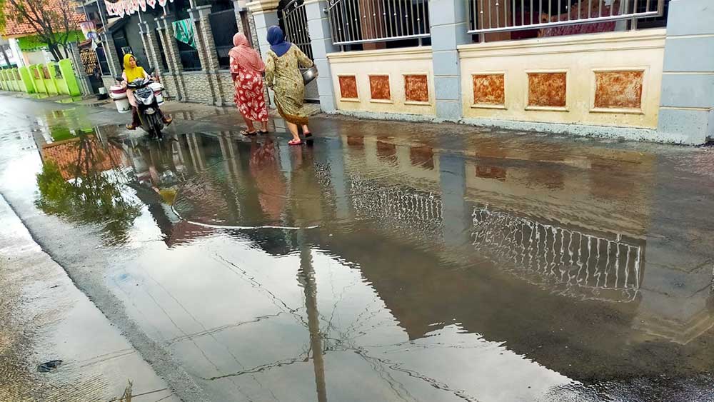 Genangan tersebar di puluhan titik yang mengakibatkan aktifitas warga terganggu. Genangan juga berpotensi merusak jalan yang baru selesai diaspal dua bulan lalu.