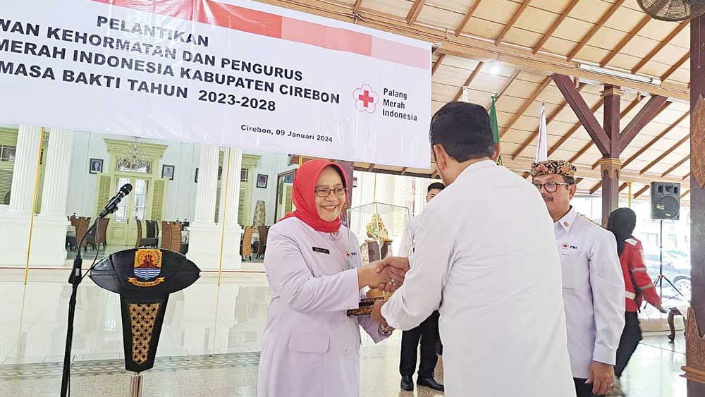 SUARA CIREBON – Rd Hj Sri Heviyana kembali dikukuhkan sebagai Ketua Palang Merah Indonesia (PMI) Kabupaten Cirebon untuk periode 2023-2028, dalam upacara pelantikan yang dilakukan oleh Ketua PMI Jawa Barat, Irjen Pol (Purn) Adang Rohjana di Pendopo Bupati Jalan Kartini Kota Cirebon, Selasa, 9 Januari 2024.