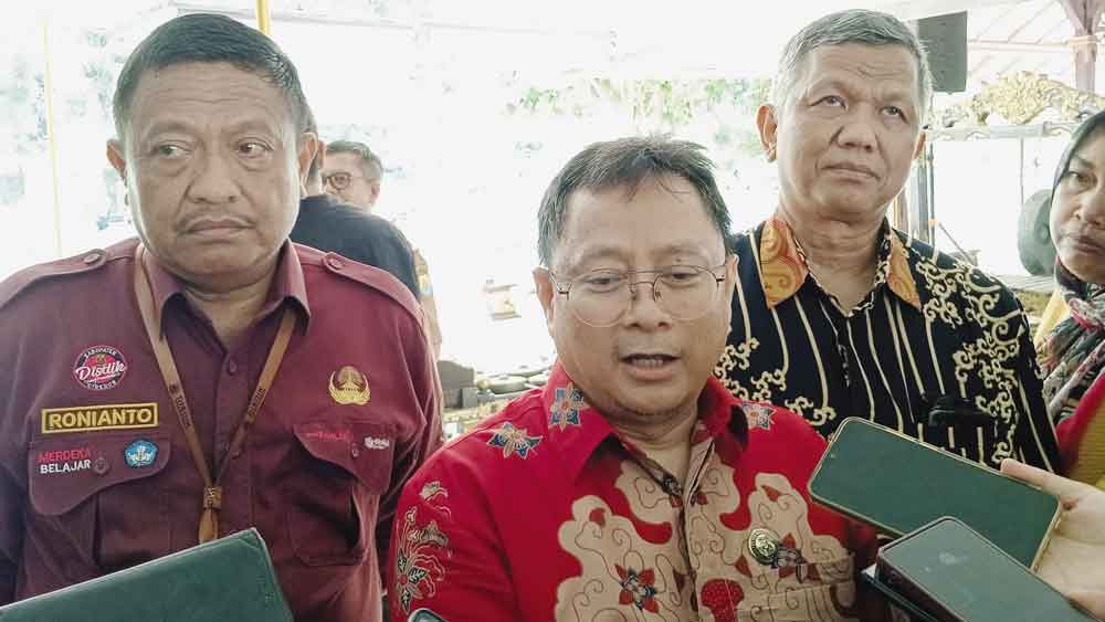 Dekan Fakultas MIPA ITB, Prof Wahyu Srigutomo didampingi Kadisdik, Ronianto memberikan keterangan kerja sama ITB dengan Pemkab Cirebon untuk para guru sains, Rabu (10/1/2024).* Foto: Islah/Suara Cirebon