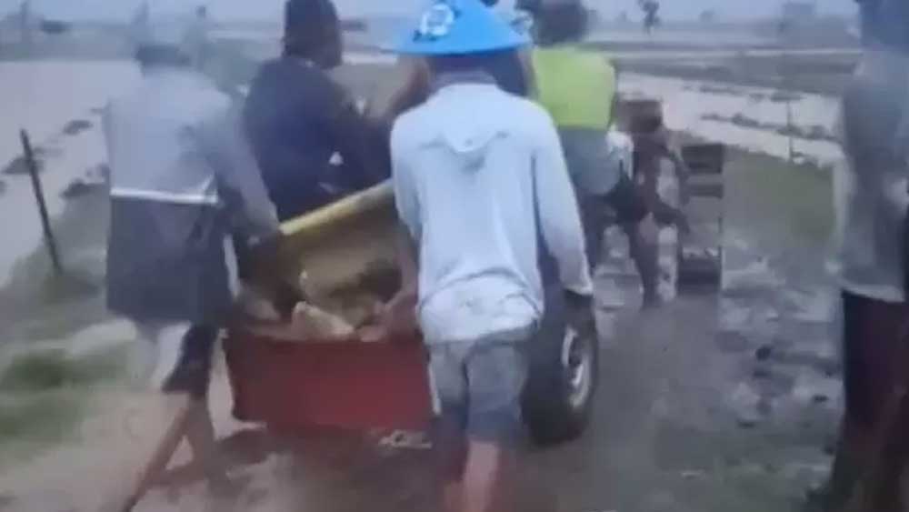 Tangkapan layar video rekaman warga mengevakuasi korban tersambar petir di kompleks kebun tebu milik Pabrik Gula Jatitujuh, Kamis, 11 Januari 2024.*