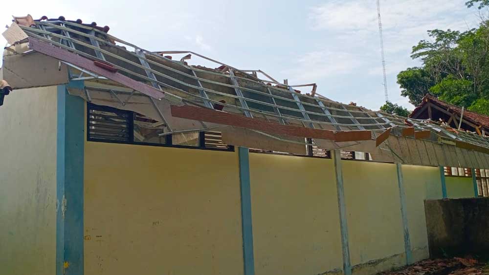 Atap bangunan SMPN 2 Greged, Kabupaten Cirebon ambruk, Jumat, 12 Januari 2024 pagi.* (Foto: Istimewa)