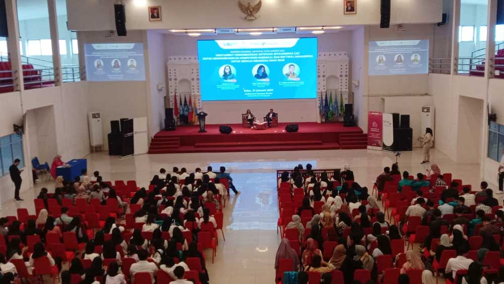 UGJ Cirebon menggelar Seminar Nasional Artificial Intelligence (AI) bertempat di auditorium kampus setempat, Rabu, 31 Januari 2024.* (Foto: Arif/Suara Cirebon)