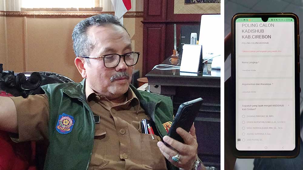 Formulir elektronik berisi polling proses seleksi terbuka jabatan pimpinan tinggi pratama (JPTP) untuk posisi Kepala Dinas Perhubungan Kabupaten Cirebon, tersebar melalui aplikasi Whatsapp (WA) di grup percakapan internal Pemerintah Kabupaten Cirebon, dalam beberapa hari terakhir.