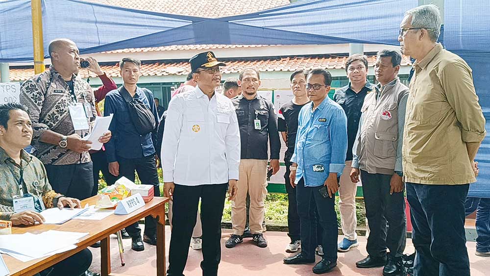 Pj Wali Kota Cirebon, Agus Mulyadi melakukan monitoring Pemilu di TPS Lapas Kelas 1 Kesambi Cirebon, Rabu, 14 Februari 2024.* (Foto: Surya/Suara Cirebon)